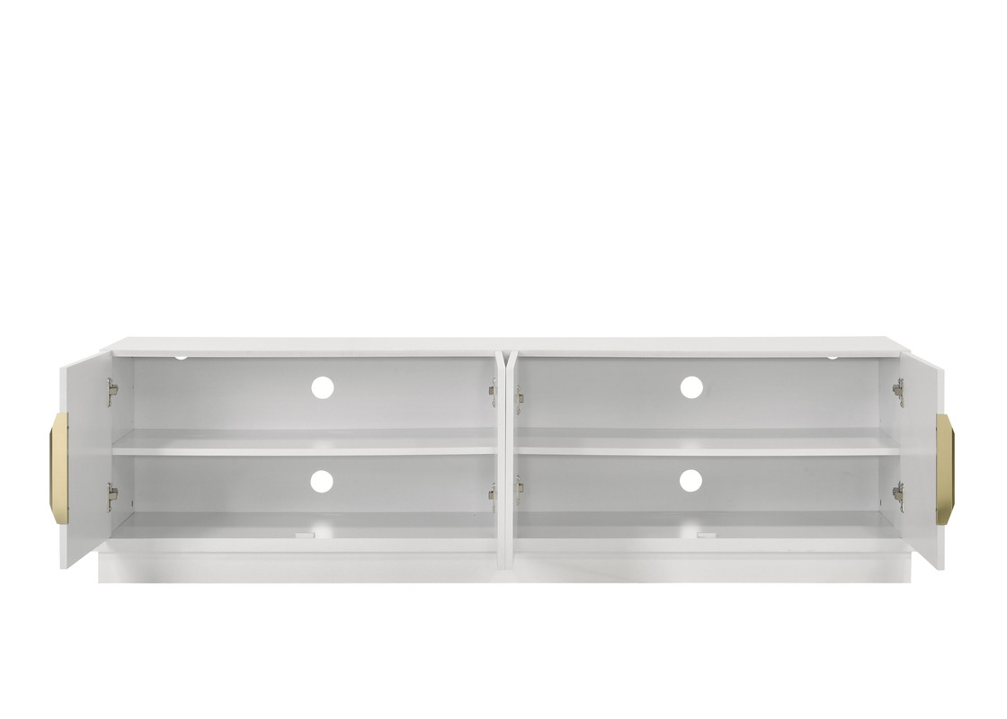 Tags: 4 Door Cabinet, Adjustable Shelf In Cabinet, Cable Management Cutout, Gold Finish Metal Handles, Tip-over restraint device included, White