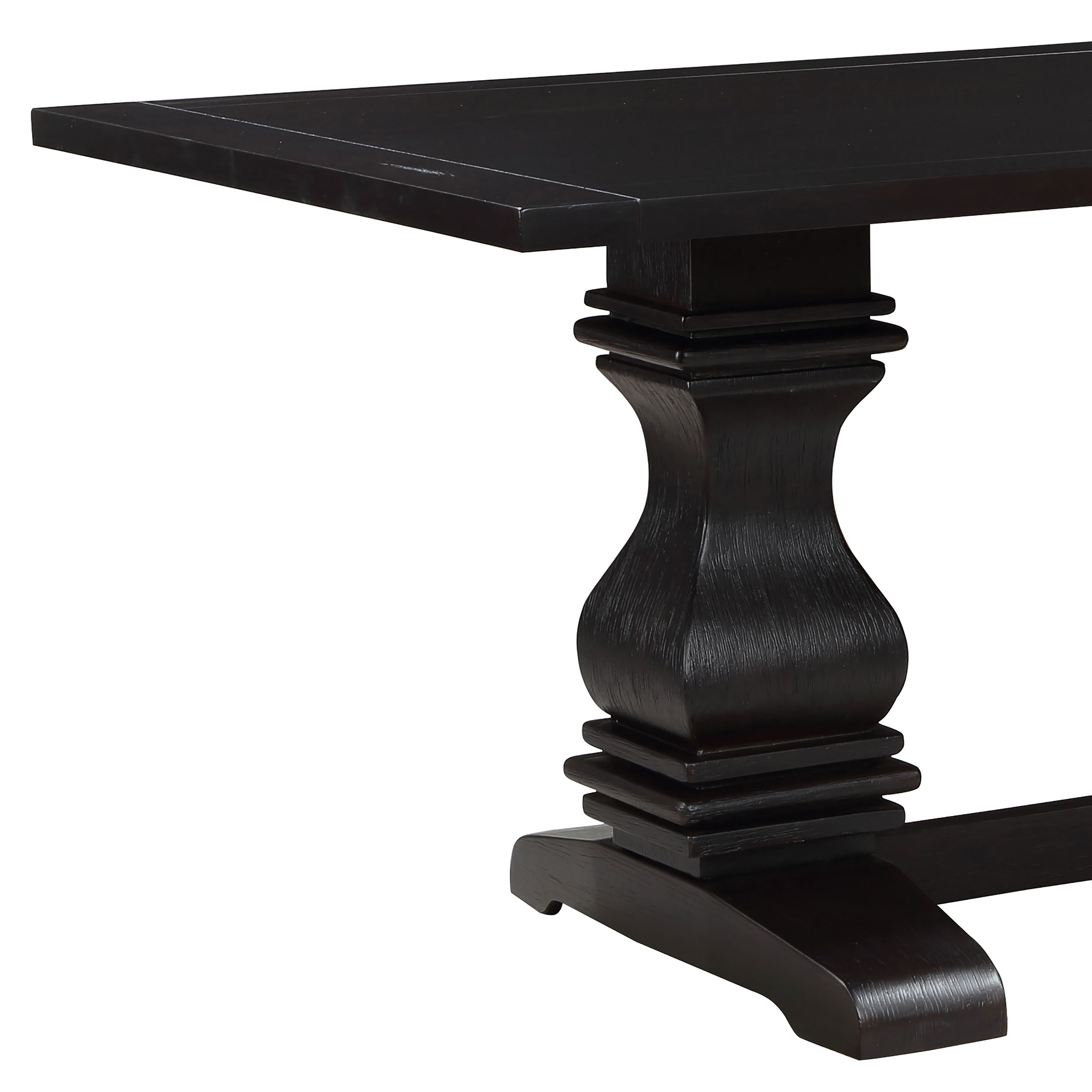 A home with a country design deserves a dining table with a rustic appeal. This dining table is constructed with a rectangular design that’s long and wide. The stylishly curved table legs are connected with a trestle-like piece that adds durability. Table is ideal for big family gatherings with animated conversation. With a set of matching side chairs or armchairs, this table looks great in any formal dining setting.