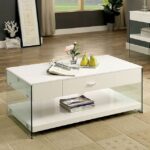 No one will gloss over the lustrous table when its situated in your living room! Easily drawing attention with its unique tempered glass panels, the tables adds even more contemporary flair with its stylish finish. Centered drawer and spacious lower shelv Contemporary White Tempered Glass, Wood, Others 10mm Tempered Glass (End Table: 8mm) Storage Drawers Open Shelf