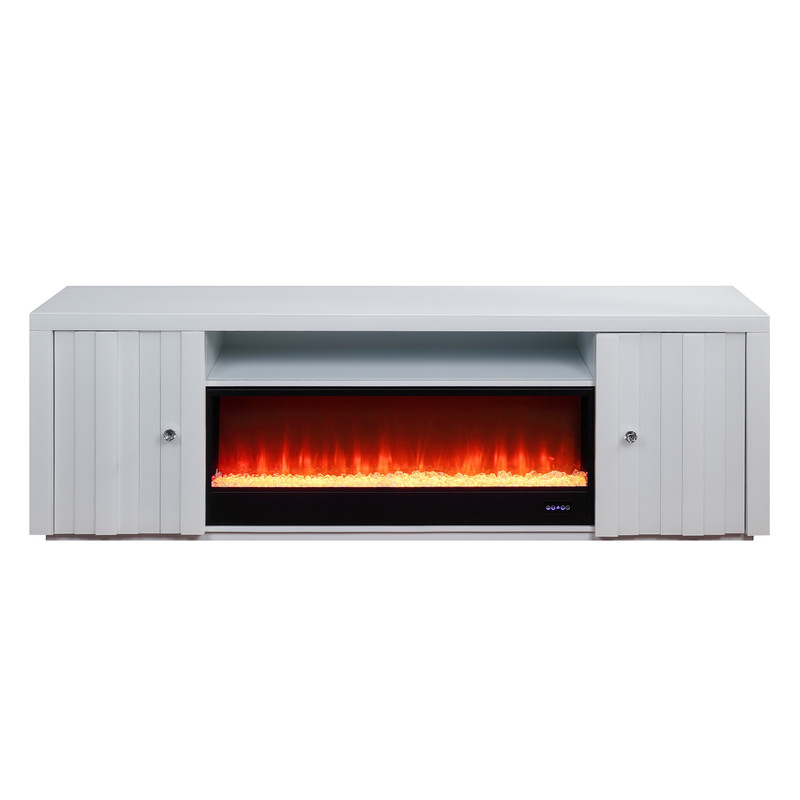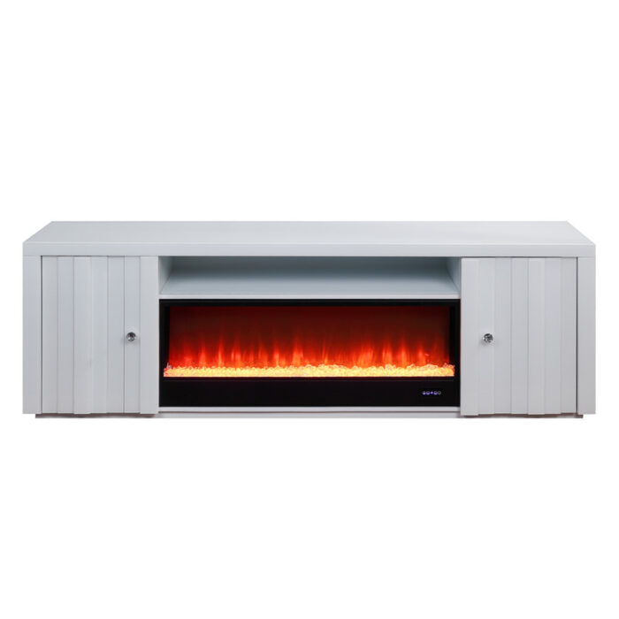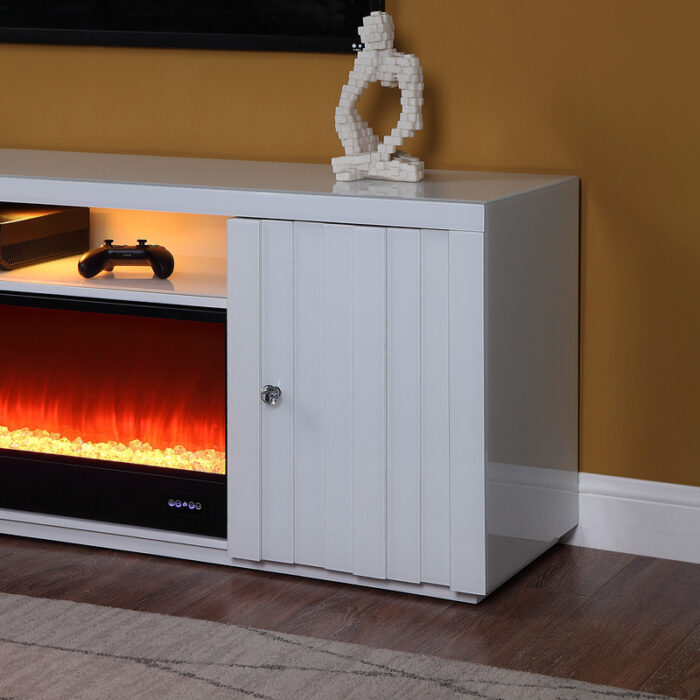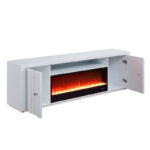 Reid 70.5″W White Finish TV Stand with Fireplace and Speaker – Lilola