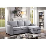 This mid-size sleeper sofa sectional is a versatile piece that will grow with your evolving home style. Clean lines, including box pillows and track arms, keep this piece feeling modern whether you are furnishing your ?rst apartment or your forever home. Contemporary Gray Linen-like Fabric, Solid Wood, Others L-Shaped Design Pull-out Sleeper Reversible Chaise w/Storage Track Arms