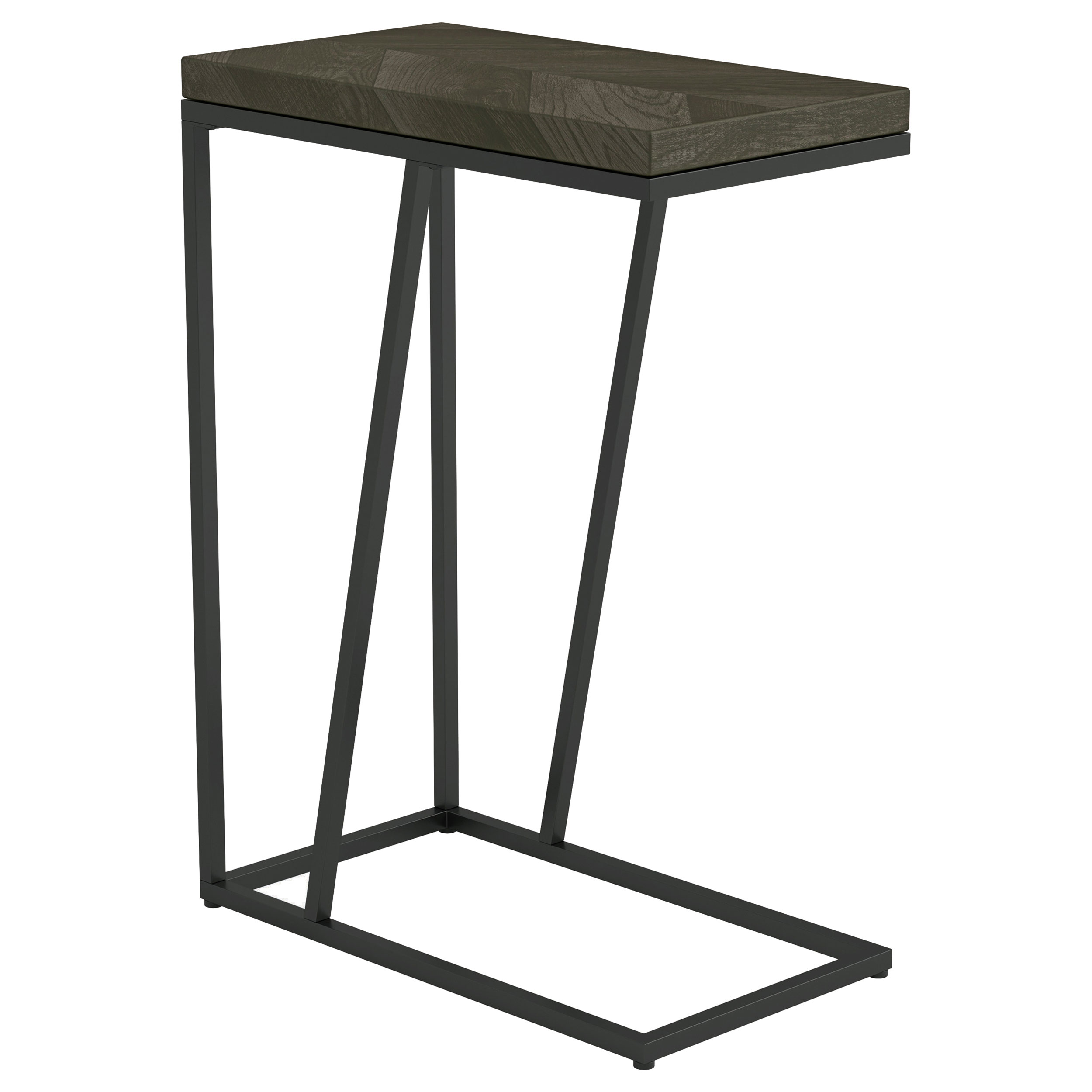 This versatile C-table seamlessly blends modern design with functional utility, ideal as a side table or chairside table. Featuring a wood-look top crafted from engineered wood with a scratch-resistant laminate veneer, it combines durability with style. The sturdy metal base, finished in a sandy-textured black powder coat, provides lasting stability. Perfect for compact spaces, its slim design easily slides under furniture for added convenience.