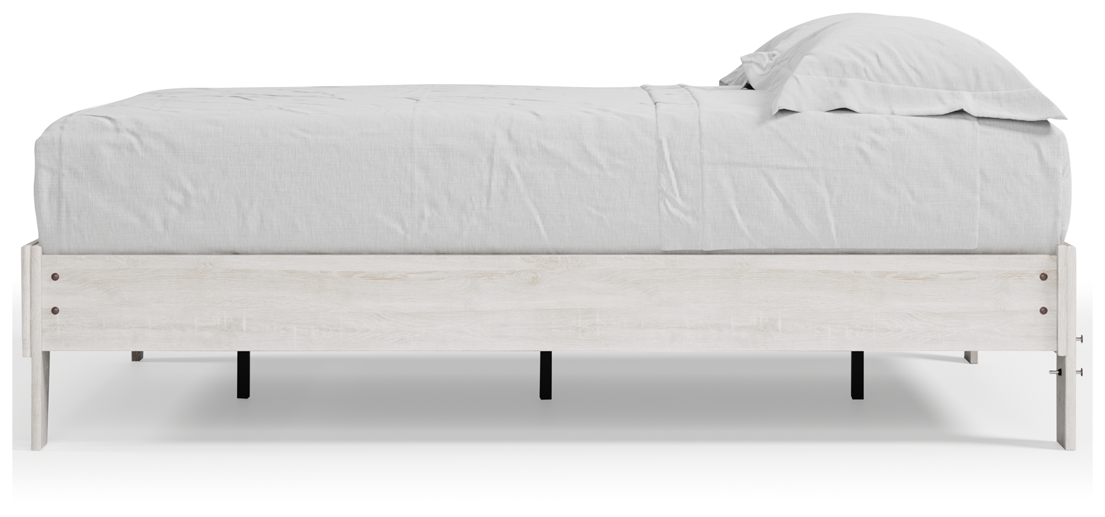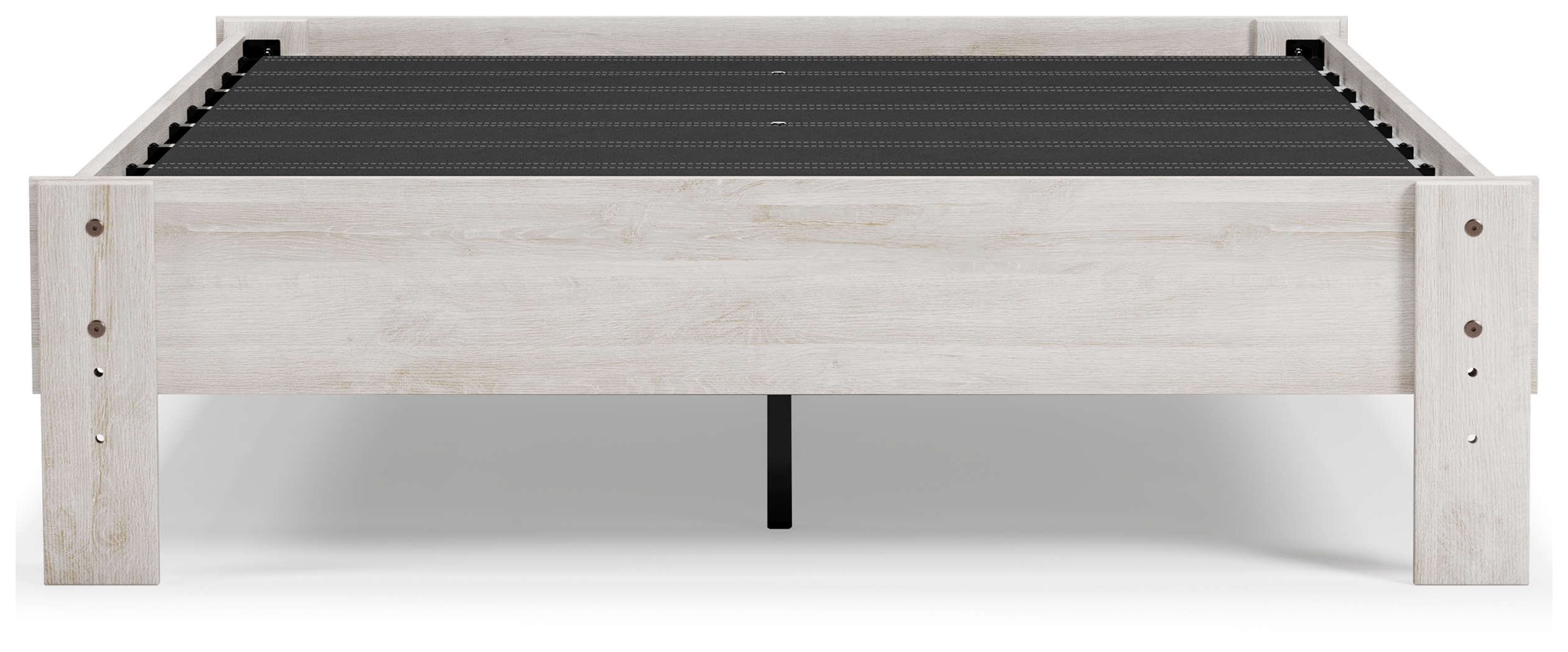 Give provincial a new meaning with the chic look of this full platform bed. The whitewash distressed finish keeps this piece light and fresh, as does its minimalist aesthetic. Dimensions: 56”W x 78”D x 15”H Assembly Instructions: https://www.ashleydirect.com/GraphicsVault/Assembly_Instr/10502898.PDF