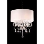 Beautiful dangling crystals are the crown jewels of this luxurious hanging lamp. The metal base and ivory shade add to the simple yet classy design. Traditional White, Chrome Crystal, Metal Hanging Crystal Shade Size: 22″ X 22″ X 9.5″ Max Watt: 40W Each 6 Lights Height: 21″ Mounting Kit Not Included 1PC/CTN