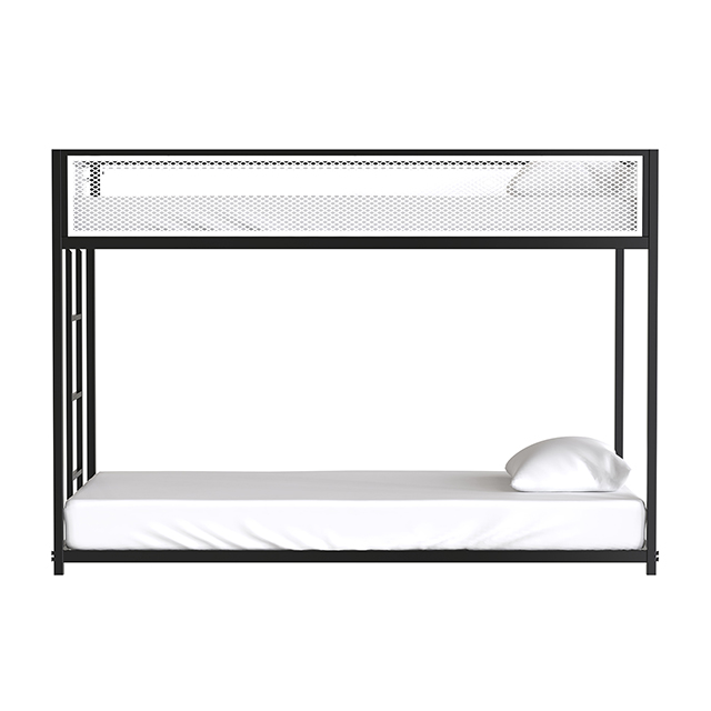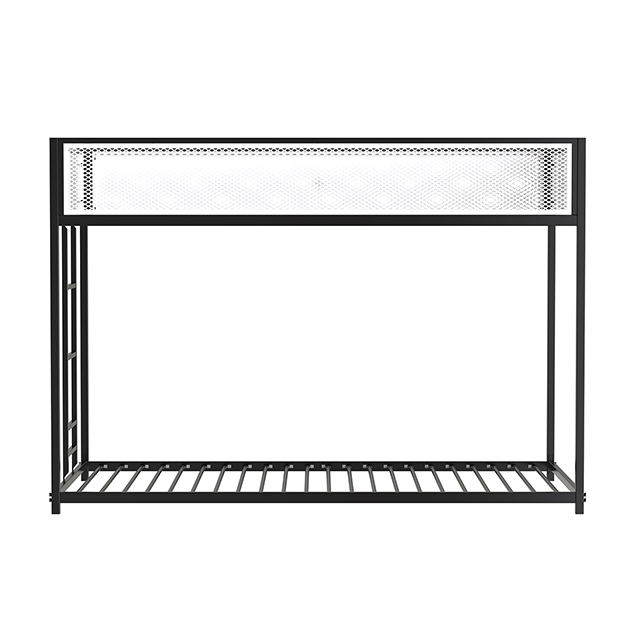 Contemporary Matte Black/Matte White Metal, Others Full Metal Construction Mesh Safety Rails Reversible Ladder Low Bunk Bed w/ Mesh Mattress Ready