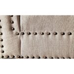 Add subtle color to your bedroom or living room with this stylishly upholstered chaise. The curved arm adds emphasis to the lengthy structure while nailhead accents pop against the smooth fabric. Transitional Beige Linen-like Fabric, Wood, Others Nailhead Trim Pillow Included