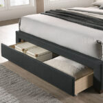 Comfort and functionality are the hallmarks of this fully upholstered, mattress-ready bed. On the comfort side, there’s the rich linen-like fabric that wraps around the frame of the bed, culminating in a simple rectangul Transitional Dark Gray Linen-like, Others Fully Upholstered Frame Button Tufted Headboard Mattress Ready Underbed Storage Drawer with Casters
