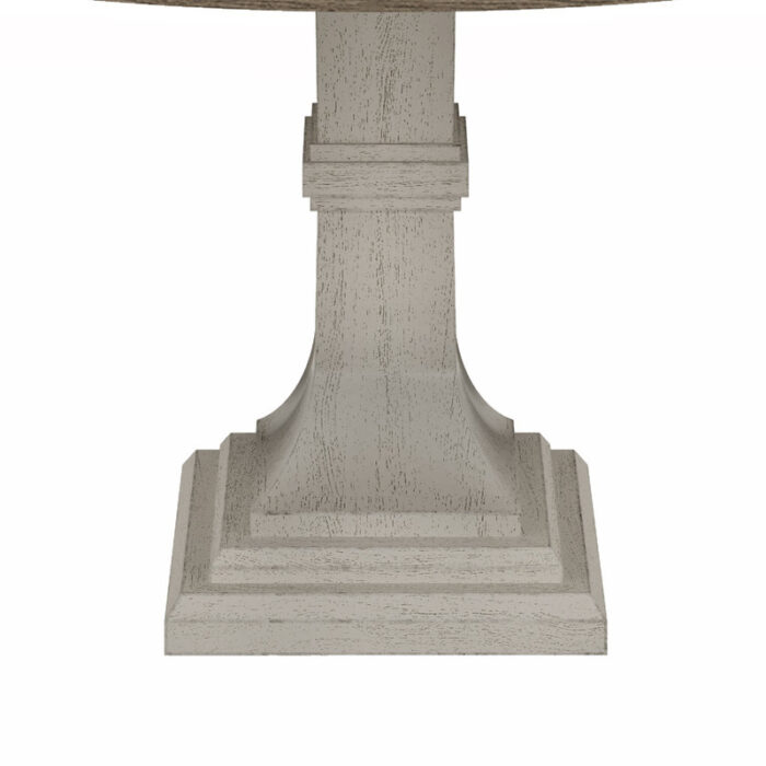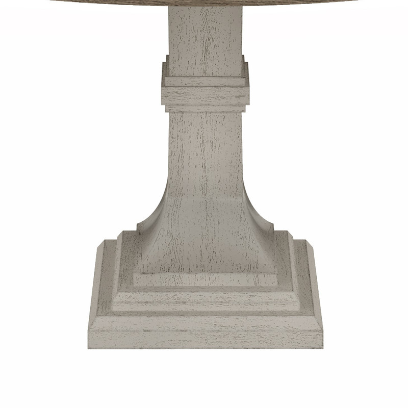 Tags: 16.5" Seat Depth, 18.5" Seat Width, 19" Seat Height, 22" Seat Back Height, Chair Dims: 19"W x 23.5" D x 38.5"H, Distressed Finish, Gray Linen Upholstered Seat, Gray Tabletop, Includes 1 Table and 4 Chairs, linen, Natural Grain Variation, Table Dims: 59" Dia x 30"H, White and Gray, White Pedestal Table Base