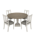 Tannen 59″W Round White and Gray 5-Pc Dining Table Set – Lilola