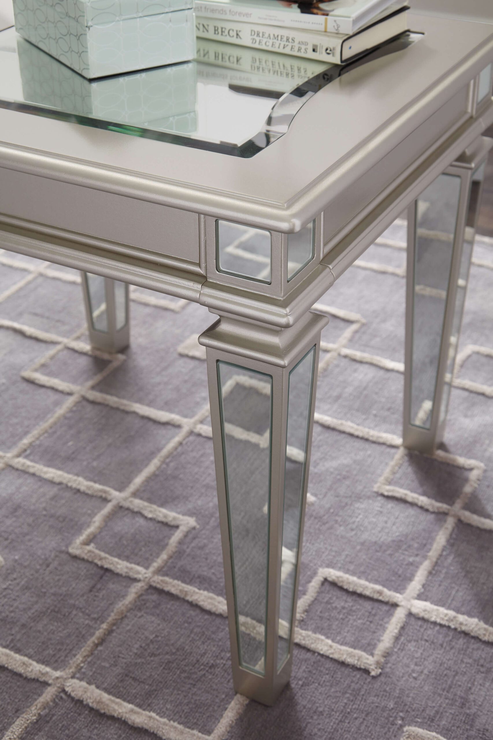 Tags: accent table, beveled glass, end table, glass, In Store Now, mirrored, silver