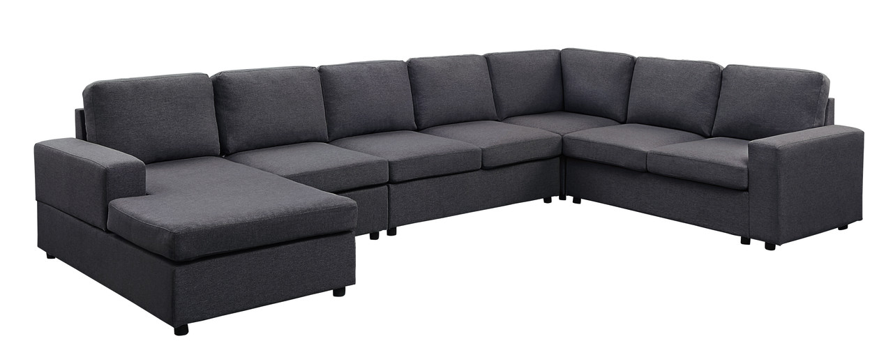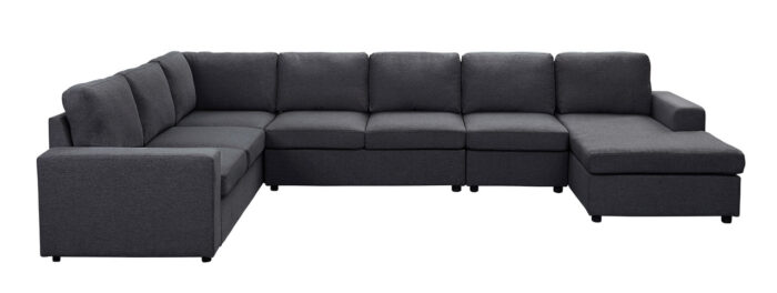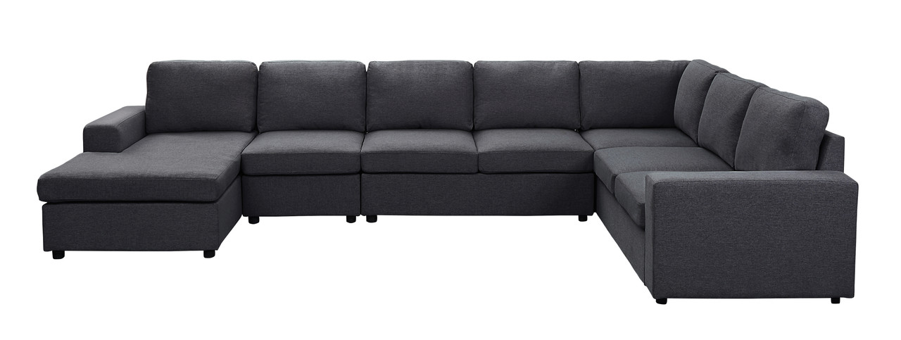 Tifton 146.5″W Modular Sectional Sofa with Reversible Chaise in Dark Gray Linen – Lilola