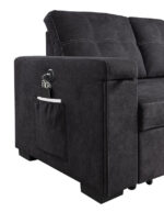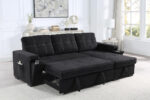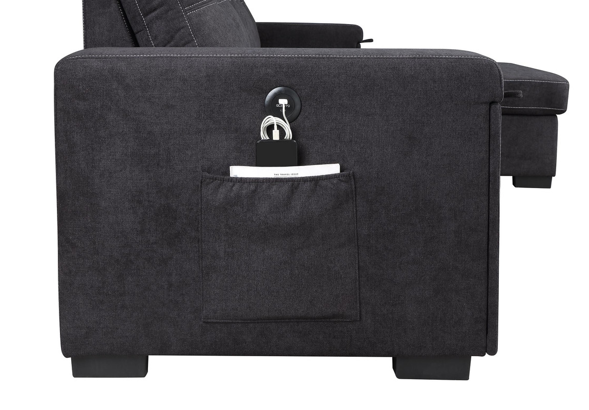 Toby 95″W Black Woven Fabric Reversible Sleeper Sectional Sofa with Storage Chaise Cup Holder Charging Ports and Pockets – Lilola