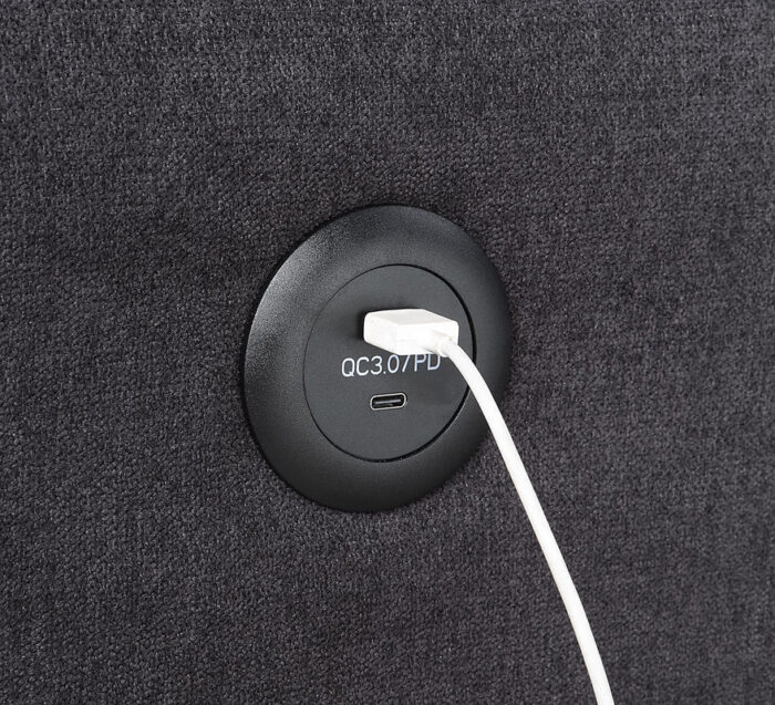 Tags: 17.75" Seat Height, 2" Black Plastic Leg, 20" Seat Back Height, 22" Seat Depth, 23.5" Arm Height, 79.25" Seat Width, black, Foam Filled Seats with Pocket Coil Springs, Hidden Arm Cup Holders, Phone and Magazine/Tablet Pouch on both arms, Reversible Storage Chaise, Sleeper Area Dimension: 79.25" x 50.5", USB and USB-C Charging Ports on both arms, Woven