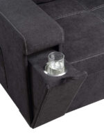 The Toby sectional sofa comes with pull-out bed, reversible storage chaise, and hidden cup holders in the arms allowing you to have a variety of functions and features, perfect for any guests! The side storage pockets can hold your phone and tablet while it’s charging with the built-in USB ports. Beautifully designed with double stitching on the back cushions and seat. Also designed with comfort in mind with the tufted cushion and quality soft woven fabric. Complete your living space with this multifunctional sleeper sectional.