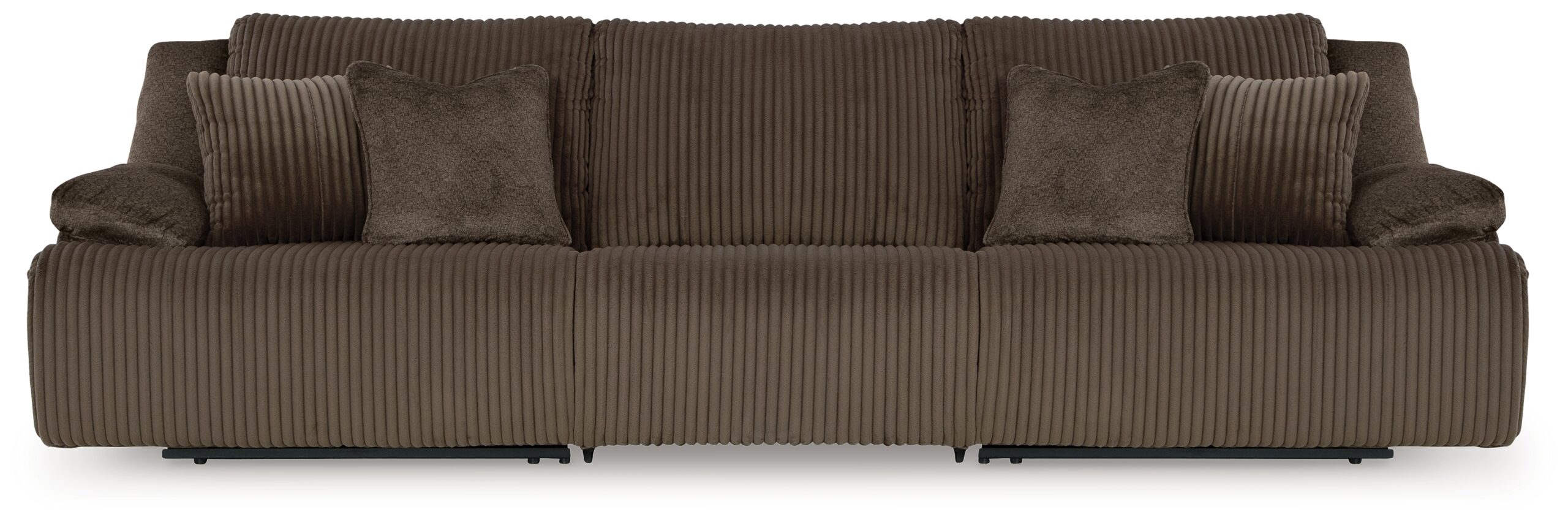 Experience unparalleled comfort with this reclining sectional sofa. It’s a stylish and invitingly soft look—made all the more appealing by cozy corduroy cushions that feel great and add a touch of texture. The rich chocolate brown upholstery effortlessly blends into your decor, making it a gorgeous addition to your home. So sit back and unwind in this spacious set, perfect for gatherings with friends and family. Dimensions: 128”W x 40”D x 41”H Assembly Instructions: