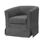 Tags: 17.9" Seat Width, 18.5" Seat Height, 20.7" Seat Depth, 24.6" Arm Height, 6.1" Metal Black Leg, 9.5" Seat Back Height, Barrel Style Chair, Full Foam Seat Cushion, gray, Removable Seat Cushion, Skirted Bottom, Swivel Base, Woven