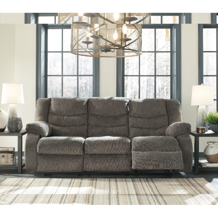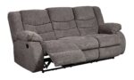 The Tulen reclining Sofa put the win in winning. Its waterfall back design and doubly plump pillow top arms team up with soft chenille fabric to go for the goal. The ample seating room makes the comfort possibilities endless. Sit back and relax. You won’t go wrong with this reclining loveseat and sofa set.
