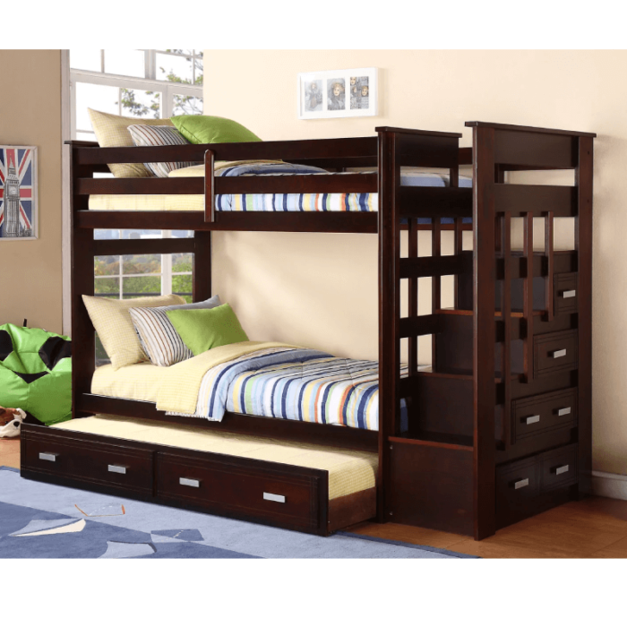 Twin over Twin Bunk Bed with Steps and Trundle Bed By Asia Direct