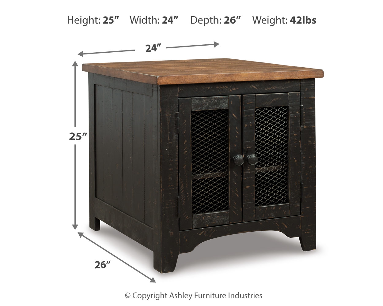 To those with an eye for the best in rustic farmhouse living, this two-tone end table doubles up on charm. Designer touches include plank-effect styling, distress marks and wire mesh door fronts for added character. Dimensions: 24”W x 26”D x 25”H Assembly Instructions: https://www.ashleydirect.com/GraphicsVault/Assembly_Instr/T459-3_AIS.pdf