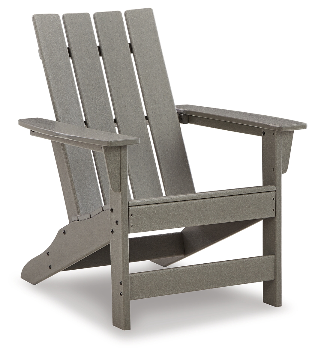 It’s the dawn of a new day for gray. Embrace the style trend with this outdoor Adirondack chair. Crafted of HDPE material that combines the exceptional durability and weather resistance you need with the “wood look” you love, this timeless chair takes alfresco living to a whole new level. And its slatted styling naturally sheds rainwater. Dimensions: 31”W x 33”D x 37”H Assembly Instructions: https://www.ashleydirect.com/GraphicsVault/Assembly_Instr/P802-898_AIS.pdf