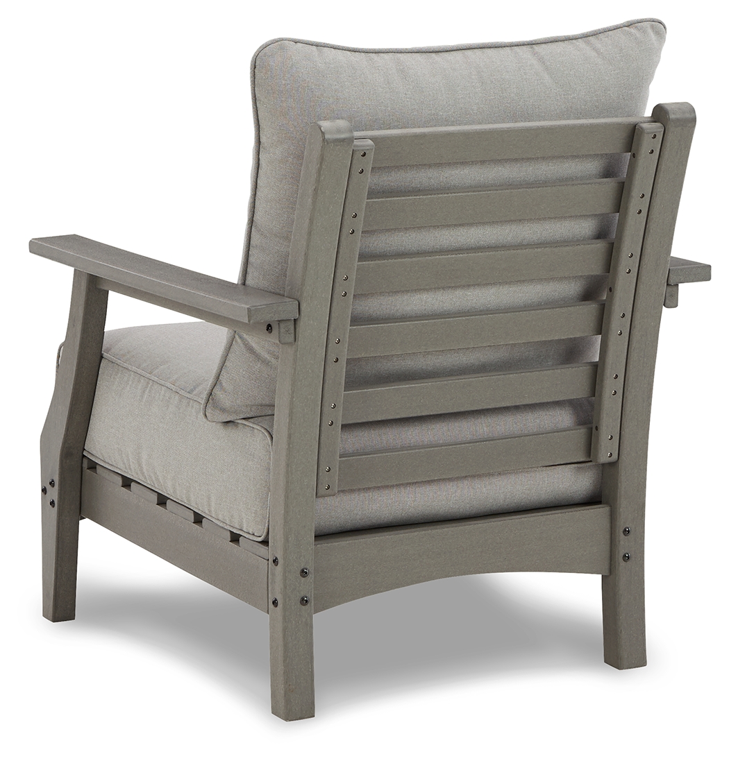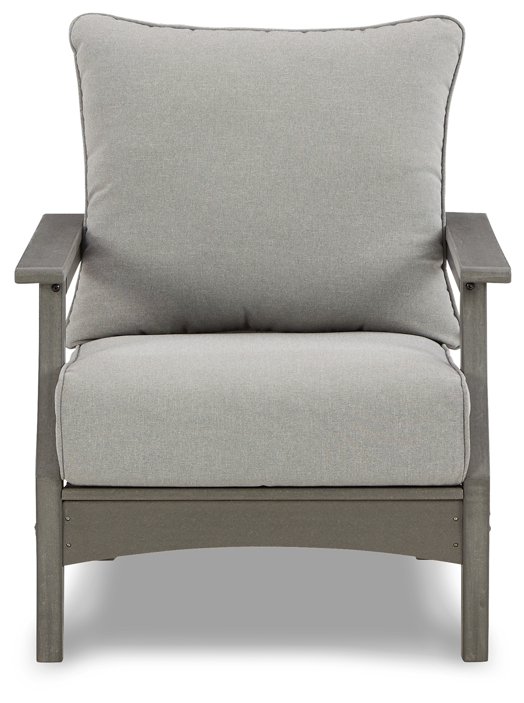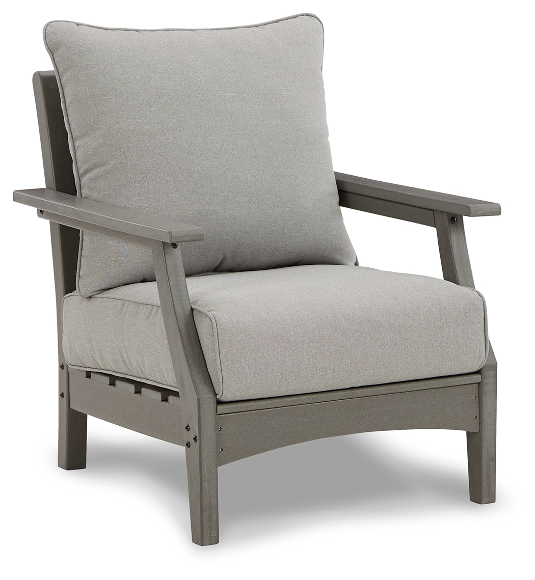 It’s the dawn of a new day for gray. Embrace the style trend with this outdoor lounge chair. Crafted of HDPE material that combines the exceptional durability and weather resistance you need with the “wood look” you love, this comfortably cushioned outdoor chair takes outdoor living to a whole new level. Rest assured, the thick seat and back cushions are wrapped in our exclusive Nuvella® high-performance fabric that’s fade resistant, stain resistant and a breeze to clean. Dimensions: 30”W x 33”D x 37”H Assembly Instructions: https://www.ashleydirect.com/GraphicsVault/Assembly_Instr/P802-820_AIS.pdf