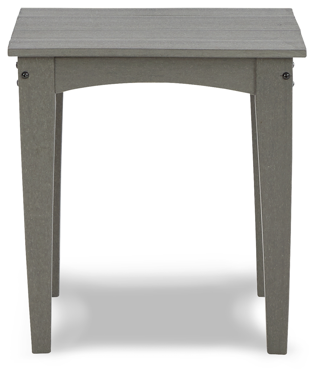 It’s the dawn of a new day for gray. Embrace the style trend with this outdoor end table. Crafted of HDPE material that combines the exceptional durability and weather resistance you need with the “wood look” you love, the rectangular table takes alfresco living to a whole new level. Its slatted top infuses a plank-style, farmhouse-inspired touch that naturally sheds rainwater. Dimensions: 21”W x 22”D x 23”H Assembly Instructions: https://www.ashleydirect.com/GraphicsVault/Assembly_Instr/P802-702_AIS.pdf
