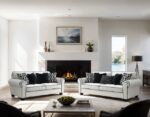 Transitional White Chenille, Foam, Fiber, Solid Wood, Others Rolled Arms and Wooden Leg Attached Seat Cushion with Velcro Skinny Slope Arm w/ Flange Trim Removable Back Pillow with Accent Pillows Included High Density Foam OEKO TEX Certified 100% Polyester Fiber