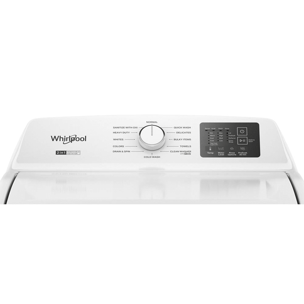 Choose how you handle each hamper with the Whirlpool® Top Load Washer with 2-in-1 Removable Agitator. The 2-in-1 Removable Agitator lets you choose how you wash. Easily swap in the agitator to help with soils or remove for extra capacity to fit large & bulky items. Presoak helps you to gently release soils with a 30 minute presoak and wash all in one cycle. Sanitize cycle cleanses loads with increased wash temps and Oxi. Cold Water Wash allows you to get a thorough clean and save on energy bills.