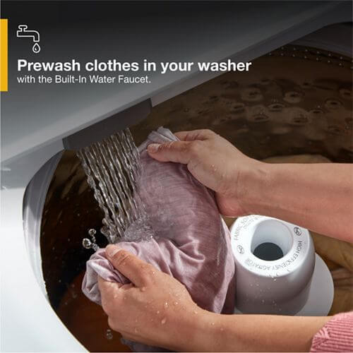 Easily prewash clothes and other items right in the washer with a conveniently located faucet that gives you easy access to an instant water stream to remove loose soils.
