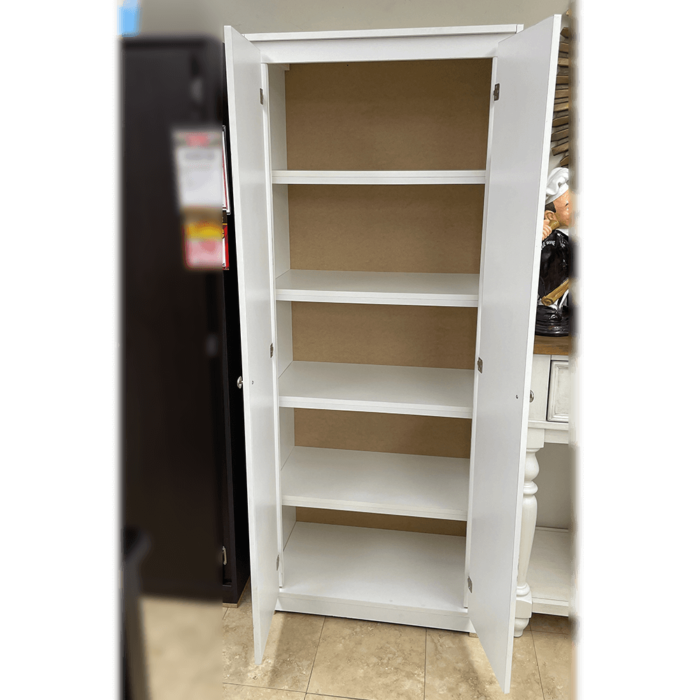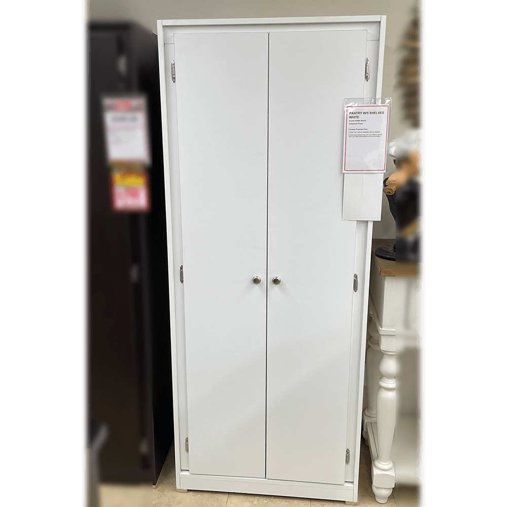 This white pantry cabinet with 5 shelves would work well to provide extra storage in any kitchen or even bedroom. See it today while in stock.