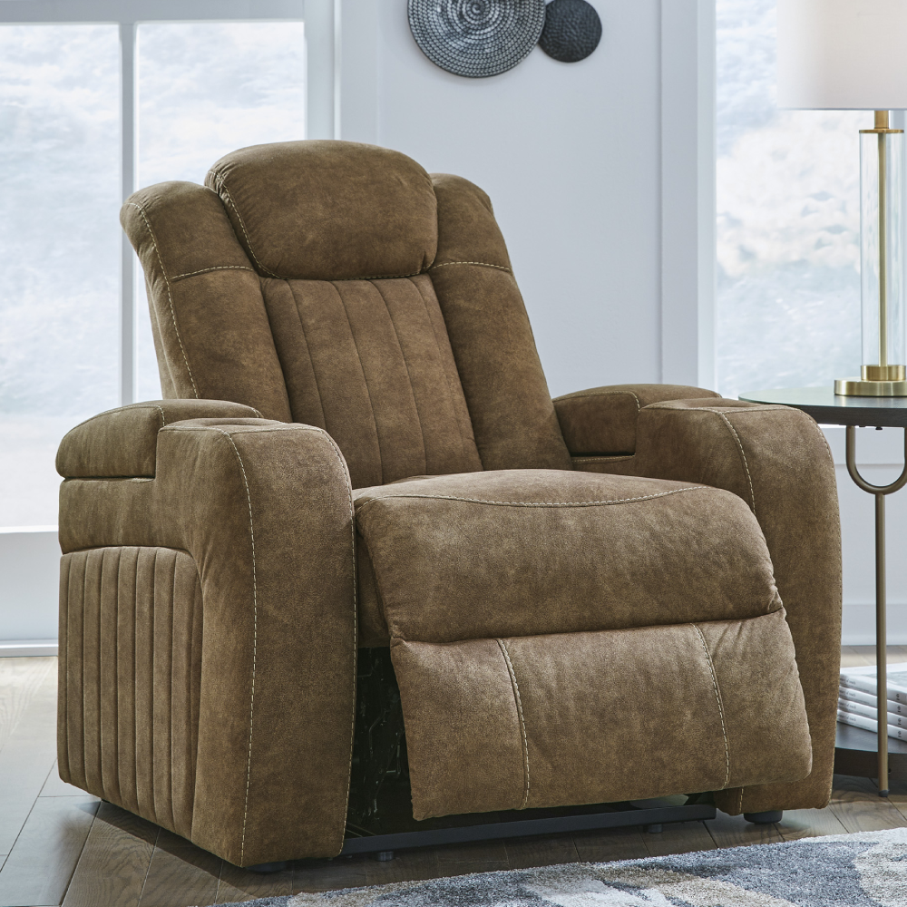 Furnish your space with fashionable function in mind. The Wolfridge power recliner is defined by its rich tonal variation, handy storage space in the armrests and seamless one-touch reclining. The addition of USB charging makes it an apt addition to your home’s relaxation hub, expertly providing essential comforts to your living room lounging experience.