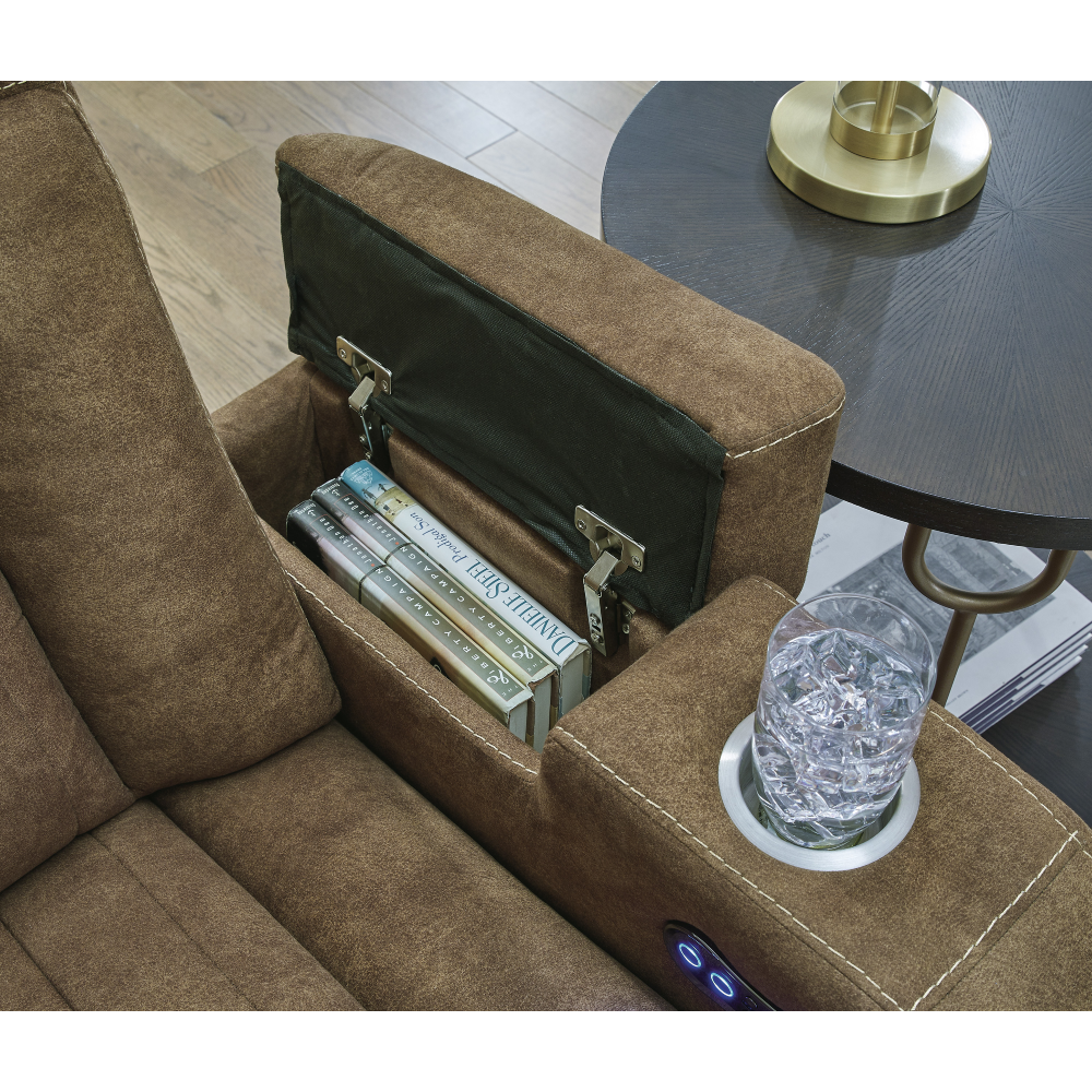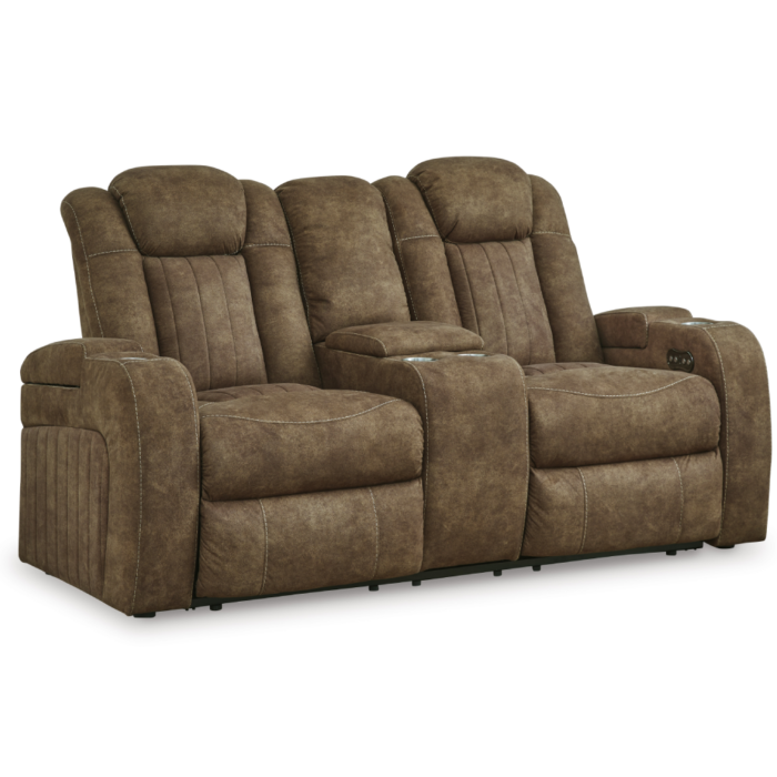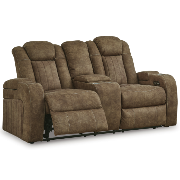 Furnish your space with fashionable function in mind. The Wolfridge power reclining loveseat is defined by its rich tonal variation, handy storage space in the armrests and seamless one-touch reclining. The addition of USB charging makes it an apt addition to your home’s relaxation hub, expertly providing essential comforts to your living room lounging experience.