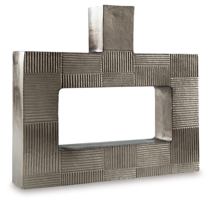 Stunning from all angles, this vase’s contemporary geometric form acts as a captivating focal point for your mantle or bookshelf. Its antiqued nickel-tone body is detailed with subtle texture for added visual appeal. What a perfect fit for those seeking forward-thinking style. Dimensions: 18”W x 3”D x 16”H Assembly Instructions: