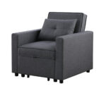 Zoey 33.25″W Dark Gray Linen Convertible Sleeper Chair with Side Pocket – Lilola