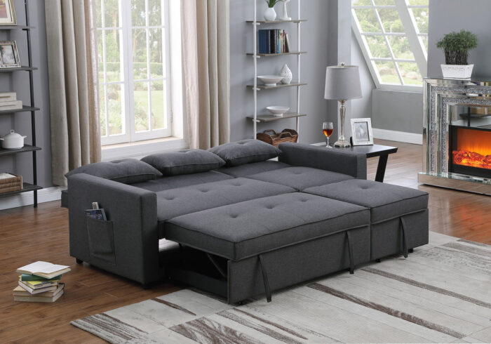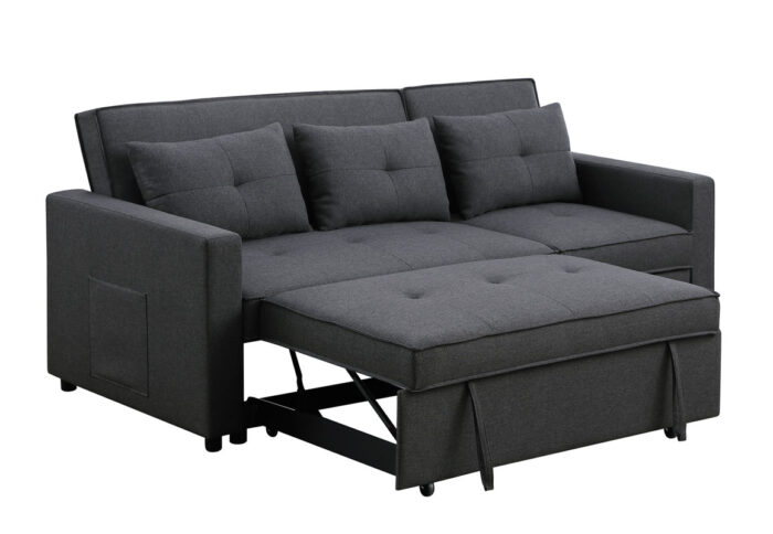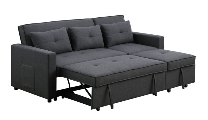 Zoey 79.75″W Dark Gray Linen Convertible Sleeper Sofa with Side Pocket – Lilola